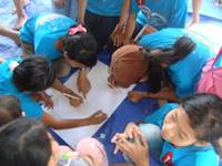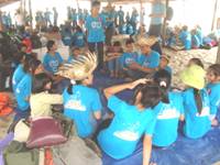 Buses began bringing in the children at 7 am. Each child receives breakfast as they arrive, then comes orientation. and group assignments. | |||||||||
