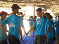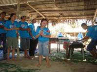The groups meet with their leader in huts for activities to help get to know each other. | |||||||||