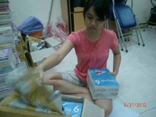 Lien, who translated letters from children to their sponsors for us. | Vivian sorting text books to be given out soon to the children. | ||||||||