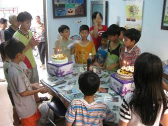 Celebrated party for those of April birthdays in F4 | Making and decorating picture frames with Family 4 kids – they looked so eager and enthusiastic!!! | ||||||||
