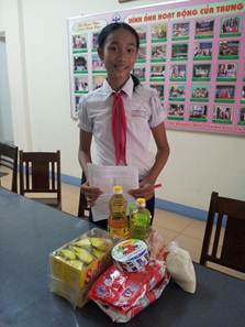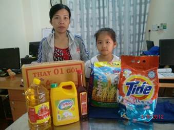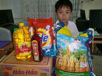 1 of 16 needy families receiving basic baskets. Each includes rice, noodles, cooking oil, fish sauce, dish washing liquid and detergent. | |||||||||