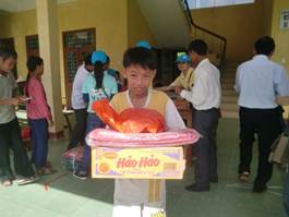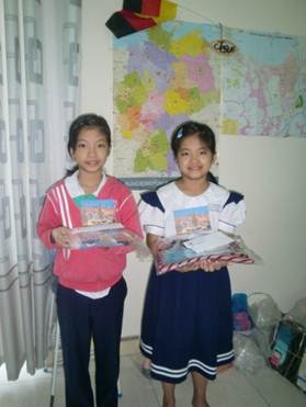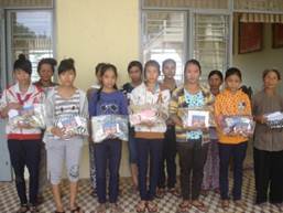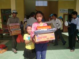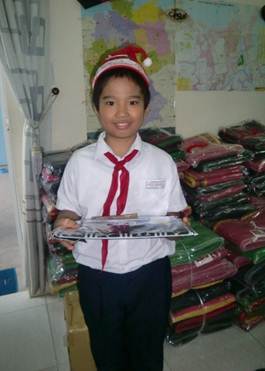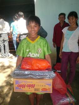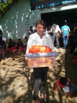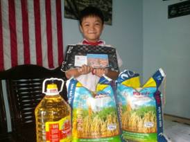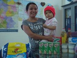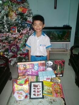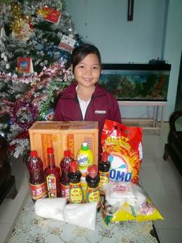 | Thien Trang with her new clothes and shoes as birthday gift. | Van Anh, newly sponsored child got initial household gift. | The orphaned boy, Thanh Duong joyfully received lego bricks, jigsaw puzzles and milk. |  |  |  | My Hien had a big smile when receiving 2 “huge” parcels from a kind, generous sponsor in U.S. What an awesome thing he has done! | Early Tet gifts for Hoang Anh’s and Truong’s family. A lot more will be sent by sponsors in January and early February. |