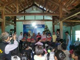 The next location is a new type of Duong Yen Tin Lanh church named Tan Hiep. 70 more Christmas gifts for families and 60 gifts for children were handed out in joy and happiness of the givers as well as the receivers. We, the LOVE staff, and volunteers had also a nice chance to talk, take photos, and have a little fun with the church kids who mostly are originated from needy families of Kadong minority tribe. Seeing the kids in shabby clothes and their faces filled with mud and/or stains, we can feel for them and pray that they’ll soon truly acknowledge Jesus as the Savior of life; then He’ll guide and lead them in all their ways. And later on when they’re grown-up, their lives will be changed to a better one in His will. |