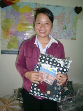 In addition to gifts from individual sponsors, every child received a Christmas gift of a scarf and 2 pairs of socks. |
