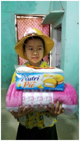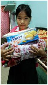 | Thu Trinh with a birthday gift of a sweet pink dress | Yen Nhi got a T-shirt and a pair of sandals for birthday | Loan’s mother received extra help to pay a debt |