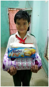 | “I’m proud that I’ve got a letter from my far-away kind sponsor”, said the boy. | Hong Anh with her extra class fee |